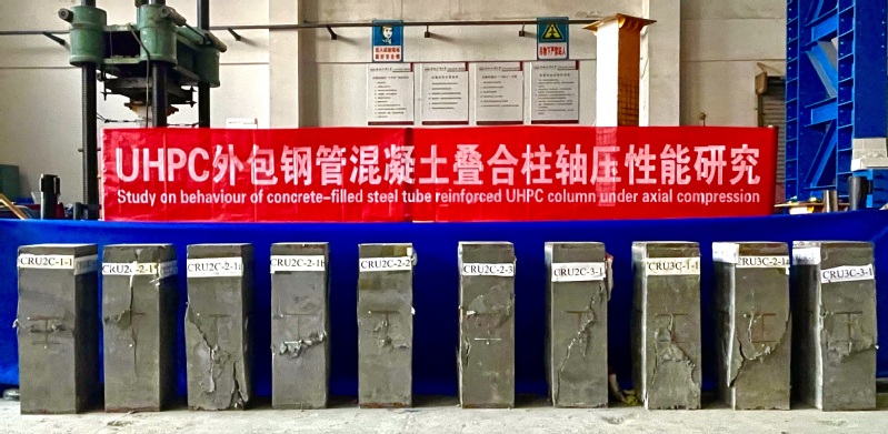 试验摘要:超高性能混凝土(UHPC)外包钢管混凝土叠合柱结合了UHPC卓越的材料性能和传统钢管混凝土叠合柱力学性能的优点,在沿海地区的高层建筑、大跨空间结构以及桥梁建设领域具有广阔的应用前景。本项目开展了19根UHPC外包钢管混凝土叠合柱和1根普通钢管混凝土叠合柱轴压试验,对试件的破坏形态、应力应变发展规律和轴压性能进行系统地研究,为UHPC外包钢管混凝土叠合柱在实际工程中的设计及应用提供参考。