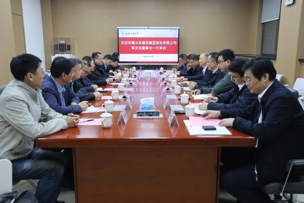 4月9日,安徽水安建设集团股份有限公司党委书记、董事长黄友保一行来欧美a片 交流访问,并签订产学研合作框架协议。安徽水安建设集团股份有限公司党委副书记、总经理耿治兵,副总经理、总工程师徐永仁,科技质量部部长段亮,综合设计院院长钱磊,组织人事部部长章天意,第七工程分公司副经理靳艳岳组织人事部副部长杨冬,学院相关领导及相关系部、实验中心、共达检测公司代表参加了会议。会议由学院党委书记王东坡主持。