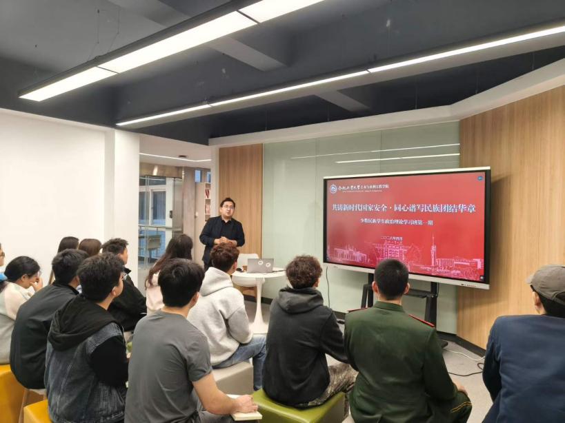 活动伊始,学校少数民族专职辅导员米尔扎提江带领同学们学习了《中华人民共和国民族团结进步促进法》核心内容,结合少数民族学生成长实际和鲜活案例,解读立法宗旨与民族平等、共同繁荣等要义,引导同学们树立法治思维,践行民族团结。
